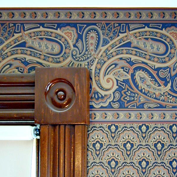 While Walt was making phone calls, I reminded myself that this was my last day here, and I had still not photographed some of the details I wanted to capture—mainly his meticulous restoration work on the house. So I walked around shooting things that caught my eye: the torch-like light fixtures flanking the front door; the elaborate two-patterned wallpaper in the master bedroom; and Walt's brass-headed cane. I could spend a year photographing this house and its contents without capturing everything, but these images will have to convey the feeling.