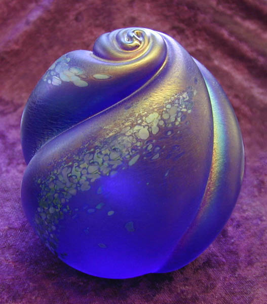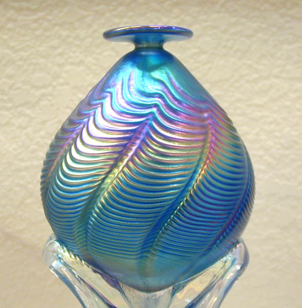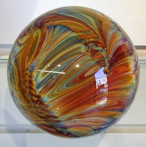 Terra isn't all Bluebirds, of course. As I wandered through the gift shop, I found many other glass and ceramic items. For example, one room was devoted to a series of "Painted Desert" vases and paperweights blown by Leo Ward and his student Gary Carter—voluptuous shapes swirled and streaked with unique and subtle colors that did indeed remind me of the Painted Desert. A brochure explained that the unusual color combinations were facilitated by the addition of a little silver to the glass melt.