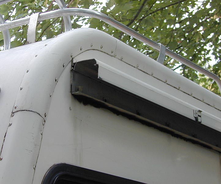 I should have deployed the thing and checked it for damage right after the accident, even though it looked fine. But if the bolts were good enough to last for 750 bumpy miles, then maybe I wouldn't have noticed anything wrong even if I had. I should have checked anyway, though. But the truth is I was much more worried about the damage I'd done to the campground's porch roof than the awning, because I had pretty much decided that I would never use it. It was just too complicated to deploy on a one-man basis...even Gary more or less admitted as much when he was demonstrating it to me. It took the two of us to get the thing out, and it was a helluvan awkward operation at that. Following the accident, it had looked fine after I tapped the end cap back in place, and I had thought that at worst maybe it would jam in the unlikely event that I ever did try to use it—if so, no big deal. It never occurred to me that it would fall off!