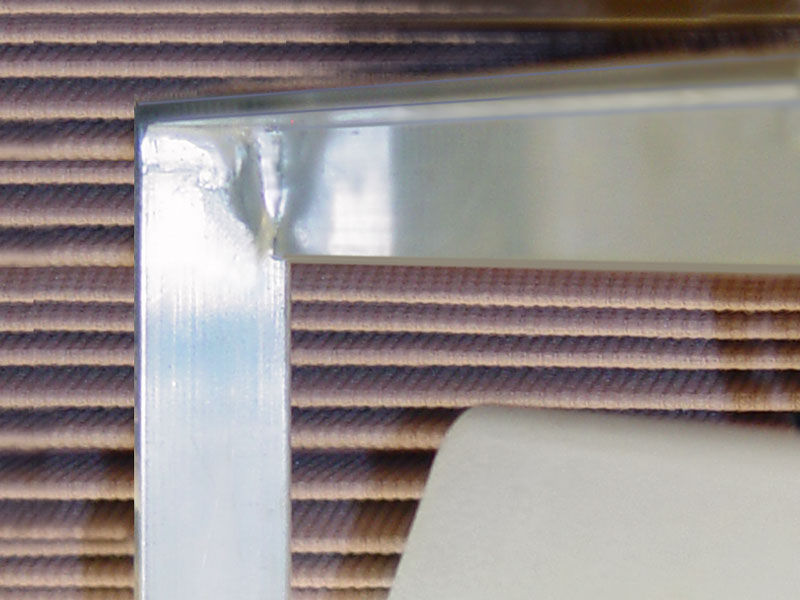 For the bracket itself I used 3/4" x 3/4" aluminum angle stock as the crossbar, with legs made from 3/4" flat stock. I brazed the legs to the crossbar using AlumiWeld. If you thought the only way to join aluminum was with a thousand bucks worth of heliarc welder equipment, this stuff should interest you: it lets you make joints that are stronger than the metal itself, using nothing more than a $10 propane torch and a 99¢ stainless steel brush. It's very easy to work with...if you have any soldering experience, it'll be a snap.
