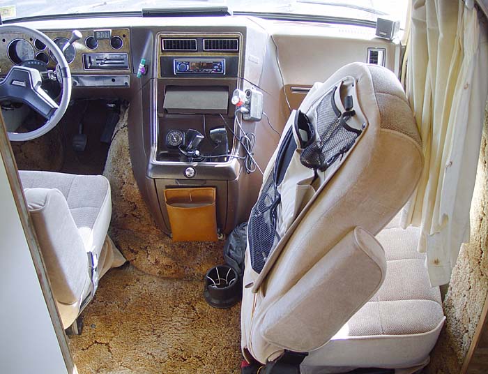 But here's an even niftier idea: I heard that another solo RVer substituted a storage chest for her passenger seat! Since the seats are only held in place by four bolts underneath (which is why I was able to replace Gertie's myself without much trouble), it was easy for this woman to have a storage unit built that matched the bolt-holes in the cab's seat rails, and just bolt it in place. Great idea!