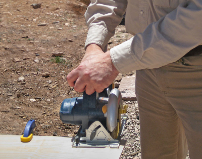 When I went on the road full-time, I brought a decent set of basic hand tools, but my only power tool was a cordless drill. Lacking a circular saw, orbital sander and a workbench, I didn't think I'd be doing much carpentry. But my new rig, Skylark, brought the need to build a desk, a pantry cupboard like Gertie's, and other amenities. And I learned two things: campground picnic tables make fine workbenches; and Ryobi's One+ cordless power tools are affordable, and powerful enough to do whatever I need. For $99 I bought a starter kit with a drill, circular saw, detail sander, flashlight, charger and two rechargeable batteries; then I added a "Rotozip"-type saw, a saber saw and a buffer that used the same batteries. All these items fit into one tote bag. Combined with a few ratcheting bar clamps, my hand tools, and the ubiquitous picnic tables, they've allowed me to build whatever I needed.
