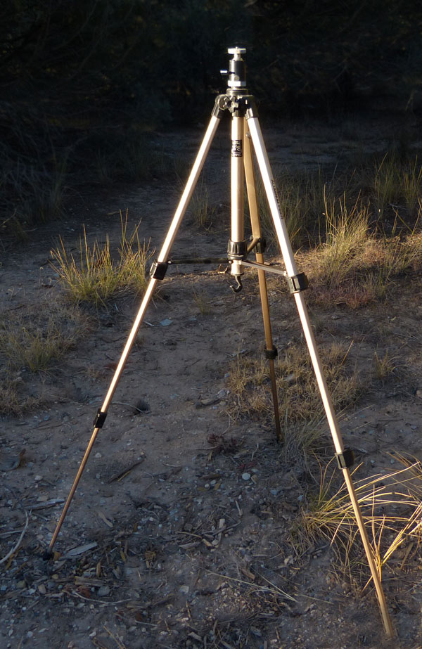 Now, if you have a two-pound DSLR body with a 600mm telephoto lens that weighs ten or twelve pounds and looks like a piece of field artillery, my tripod isn't going to work for you. You'll need a big pro tripod, and you can expect to pay hundreds of bucks for it—and hundreds of bucks more for a good pan- or ballhead. It's going to weigh a lot more than a couple of pounds, too. But for my Panasonic FZ150, which weighs 1.2 pounds including its 25–600mm lens, my cheap Vivitar tripod is plenty stable... and a lot easier on my arms and back.