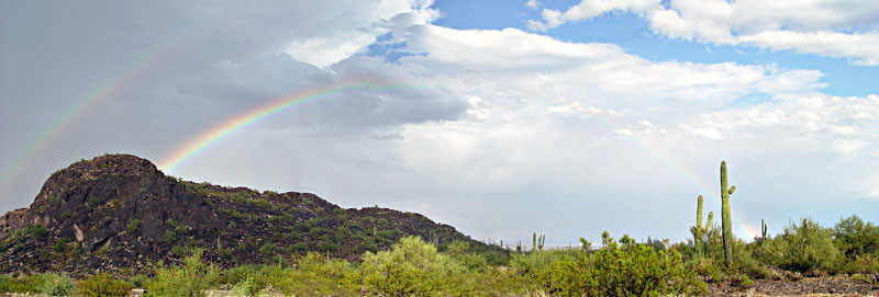 I caught spectacular sunrises as well as sunsets, and a couple of rare desert rainstorms...one of which ended in a double rainbow. I even created an ersatz postcard for the place.